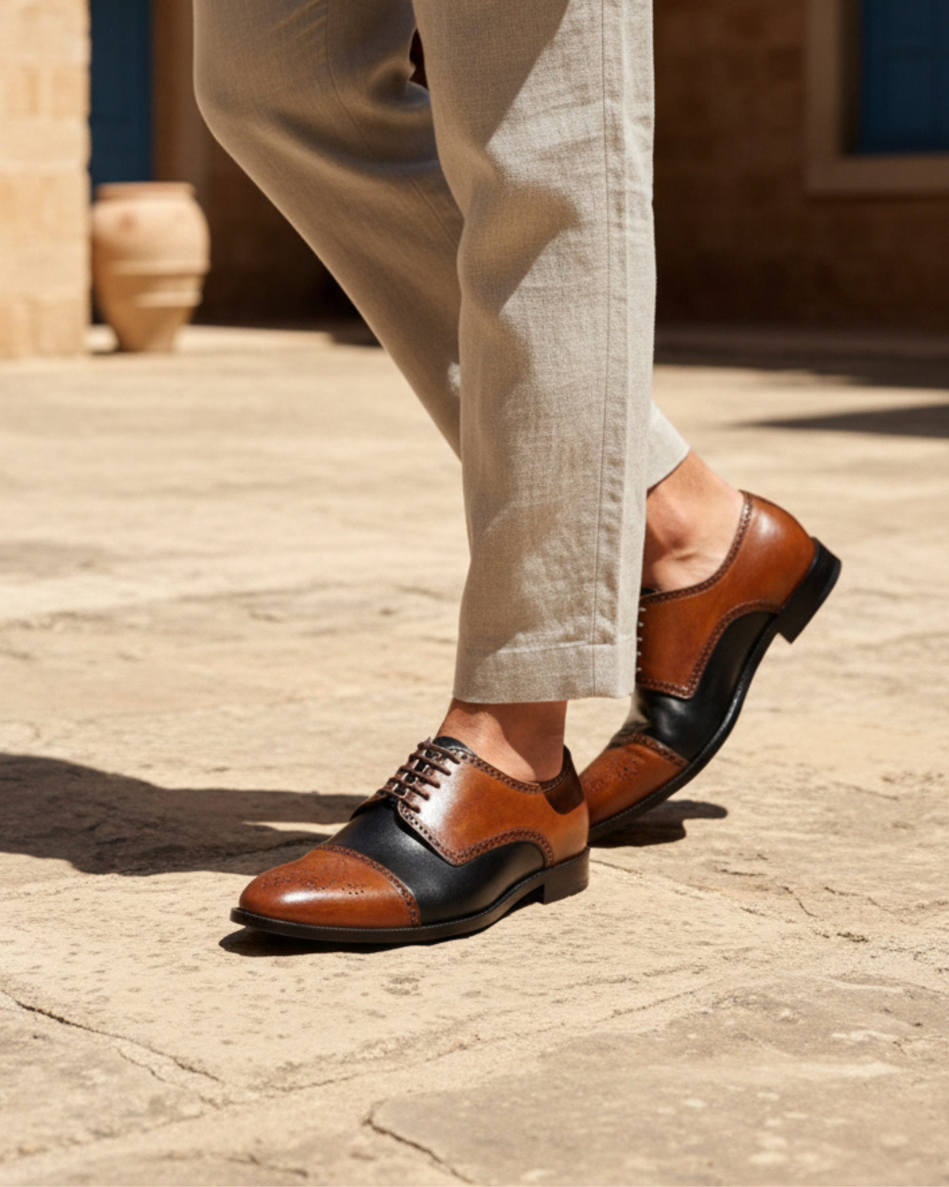 Make a confident statement with these two-tone leather Oxford shoes, designed for men who value classic craftsmanship with a modern edge. Featuring a rich brown and black leather combination, this elegant lace-up silhouette delivers timeless sophistication ideal for formal and business wear.